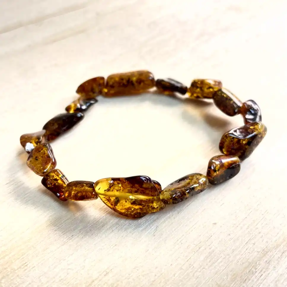 The elastic thread ensures a comfortable fit for most wrist sizes, while the softly polished surface enhances both comfort and depth. The earthy tones pair effortlessly with natural, minimalist, or bohemian styles, adding warmth and grounding to any look. Light and easy to wear, this bracelet feels alive on your skin — radiating the calm energy only genuine amber can hold.