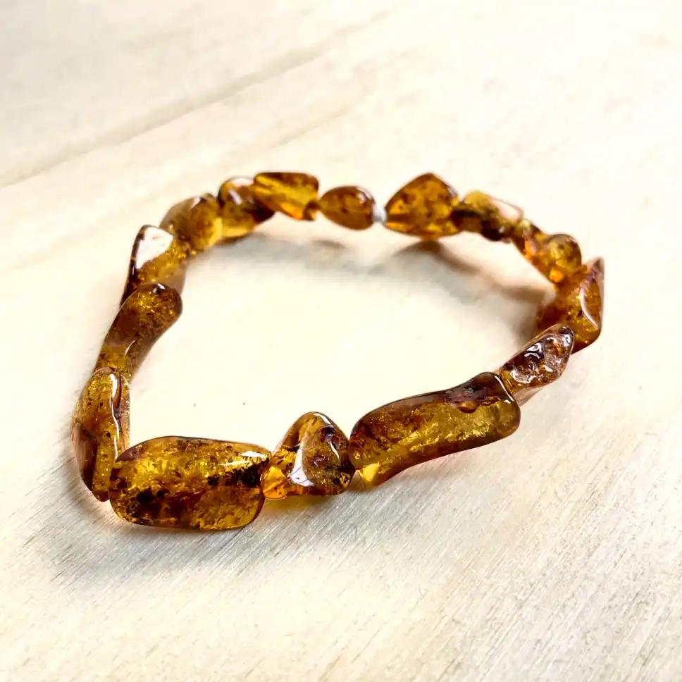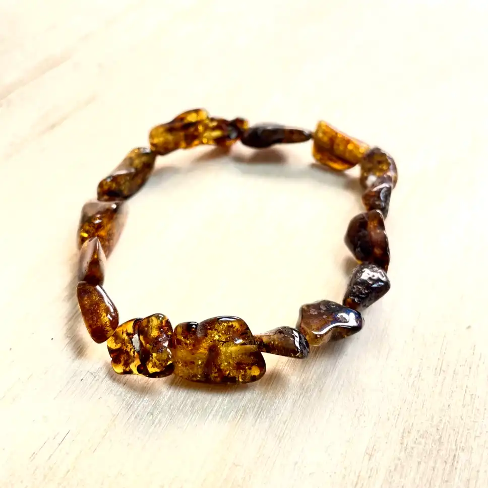 Each Amber Nugget Bracelet is handmade by Baltic artisans who honor the individuality of every amber piece. Unlike mass-produced jewelry, every bracelet carries personality — no two nuggets are ever alike. The organic shapes, natural cracks, and air inclusions reveal the soul of true amber and its connection to the sea and earth.